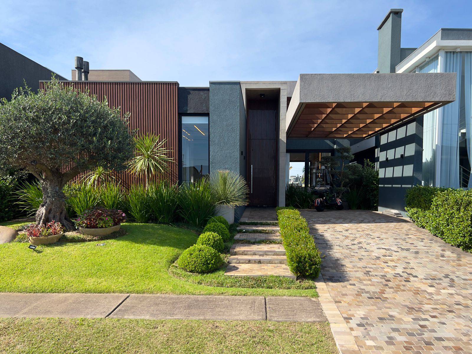 Casa beira lago no Condomínio Capão Ilhas Resort, condomínio com infraestrutura de lazer e segurança diferenciado e com acesso a belíssima lagoa dos quadros, linda casa recentemente construída, com arquitetura moderna, cores atuais e esquadrias em PVC, composto por 03 suítes, lavabo, living integrado em 3 ambientes com lareira, cozinha americana, churrasqueira, ampla área de serviço, abrigo para 02 carros, casa com alto padrão construtivo, esquadrias em PVC, piso porcelanato, 100% rebaixo em gesso, porcelanas e metais classe A, esperas para água quente e ar condicionado Split.